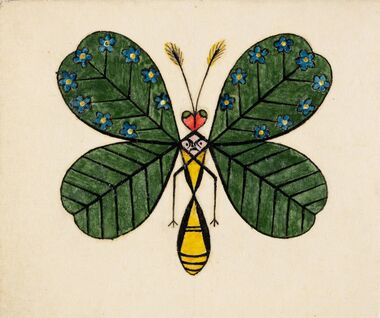 The longing for security and sexuality is expressed through intimate but also disturbing animal-human compositions. Animals can promise comfort and healing for patients, for example in the form of a phoenix capable of regeneration. But they can also represent misfortune, grief, and fear, as in Lea Hürlimann’s dream images. The bird symbolizes freedom, the butterfly is a metaphor for the soul, transformation and resurrection.